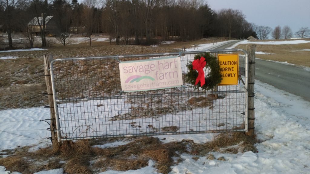 Yesterday, I drove over to Flying Cow Signs in Manchester, VT to pick up a new carved/raised logo wooden sign that Peg gave me for Christmas. It measures 40″ by 16″ and looks great. Once the snow melts, Peg and I will replace the nylon banner that is on the gate at the bottom of the driveway.