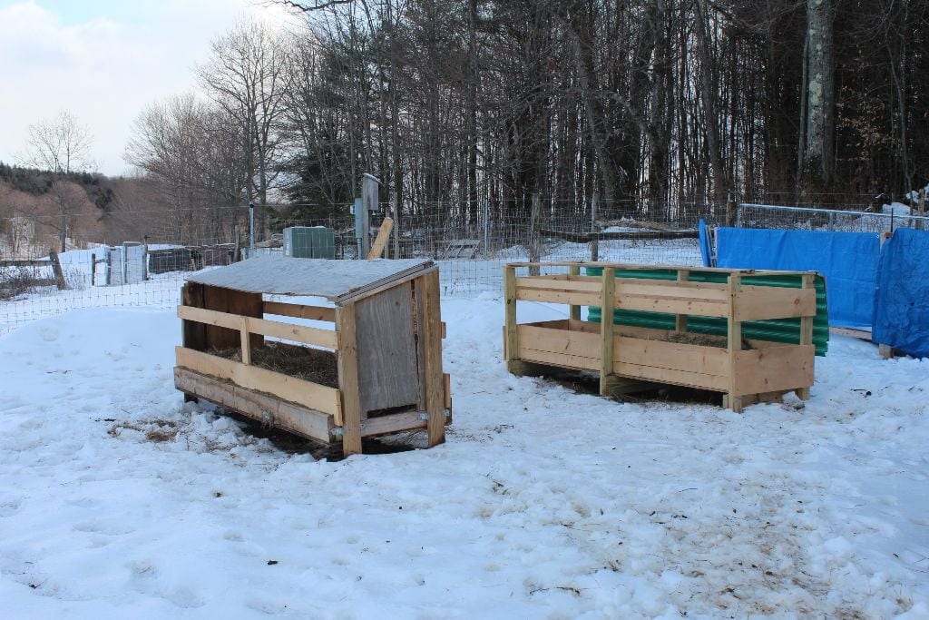 Two of three long feeders for 20 sheep