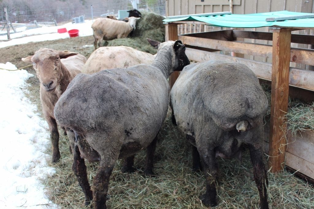 When the hips stand out the fetus has dropped into place, when the tail bone rises, when mucus appears, when she scrapes the ground, when she separates herself from the rest. We’re at day 148 since putting Hanson and Nash in with the girls and for our breed this means any day, any hour, lambing season will commence. We’ve separated last year’s lambs, two wethers and Martha who’s getting a breeding break this year, so that when we grain the pregnant ewes they don’t have to share their one pound portion with others. It’s an efficient way to give them protein without taking up too much space because in addition to four stomachs, the fetus are now growing rapidly.