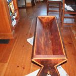 To date, we’ve been using a wide woven basket on a child’s chair to hold a mixed up pile of mittens, work gloves, ski gloves, scarves, hats and it drives me nuts. With dimensions on a scrap of paper, I drove over to see Ken on a sting-your-fingers-off frigid morning a few weeks ago. He took me into his work room, apologized for the lack of heat – something had busted the day before – and he recounted pulling up floor boards out of the attic of a 1746 home in Claremont a few days earlier. “ It’s called King’s Wood because he owned all the land and the trees were all kinds of wide, some 25 inches some 40, what you don’t see any more. This is wood you can’t buy in a store.”